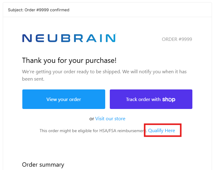 Subscriptions follow a different process. Customers should place their subscription order normally, then click “Qualify Here” on the thank-you page or in the order confirmation email to start the Truemed reimbursement flow after purchase.